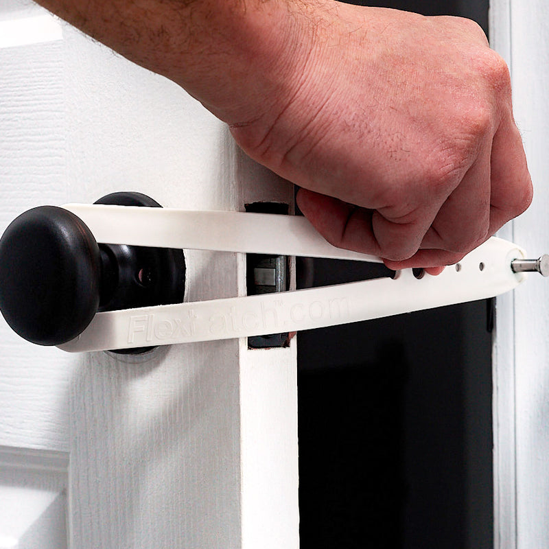 Our one-piece design gives easy access from either side of the door, locked or not, FlexLatch™ doesn't inhibit your movement whatsoever. Because there is no cutting, measuring, double sided tape or screws to fumble with, FlexLatch™ won't ruin your paint, and won't damage your home!