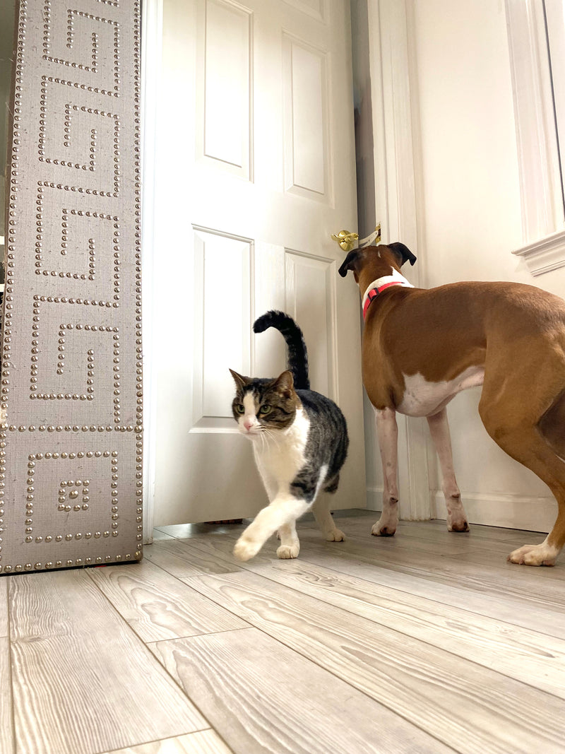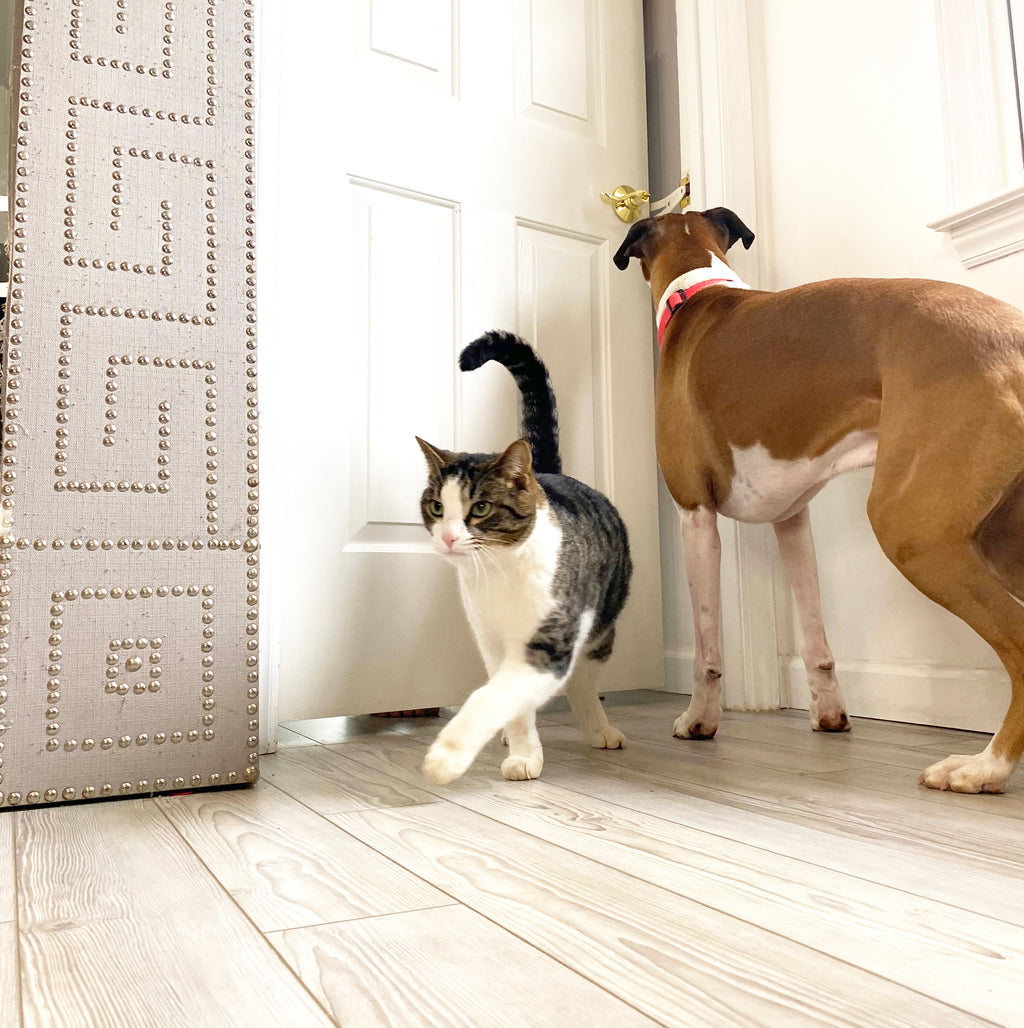 Make sure there are plenty of places for your cat to hide and relax, and provide them with plenty of toys to keep them occupied. Try a FlexLatch to give your cat some private space to relax!